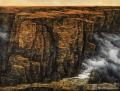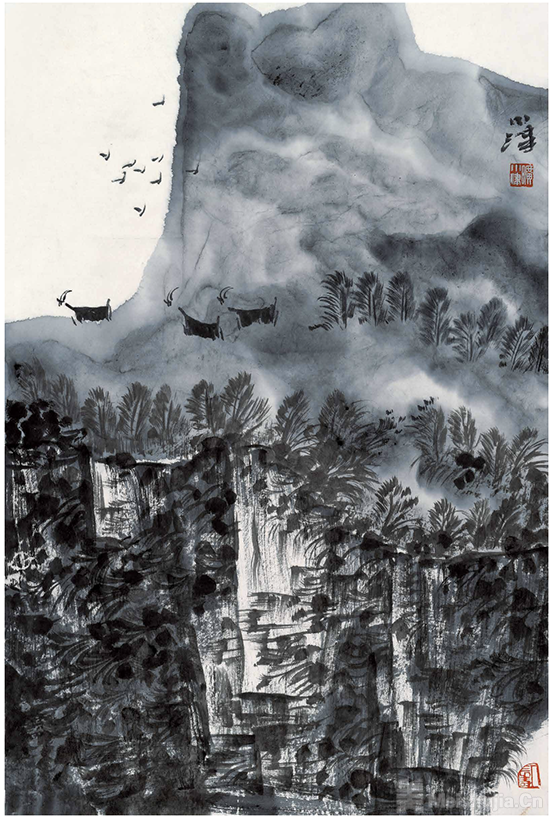 今再读小津山水画,有几点感受:一、小津之山水画,缘于宋画,立于时代,得文脉之道,发心灵之情,破古画论之金句,开豪放之图式,创笔墨之新径,继抱石、可染等大师后,以雄强之风,傲骨之气,情怀之辽远,写"国山”的气魄、画时代之内核、展民族之铁骨。其山之景仰,浩浩荡荡,境界磅礴,把中国山水画从可游可居之审美,引流“国山”气吞山河,吐八荒大美之精气,彰显崇高的民族和江山精神的伟大范式,其审美向度壮怀华夏五千年文明之鼎力。二、其笔墨语言,在前辈各种皴法之基础上,耕耘出独具旷氏山水风韵的“石刻”皴法。此发现和创造,更新了国画对石头和石山之悬崖峭壁的审美表达。笔墨之独创,颇有开宗独善的美学意义,又与石山自然之筋骨之肌理融合一体,非思想者莫能达也。三、旷氏山水画,以太行精神为主体,以张家界风光镜像为代表,已成为民族之魂、时代之史诗、国之伟大复兴之名片,开中国山水画之文化新气象和审美崇高之新视野。以上三点,足以写入山水画变迁之史,也为中国山水画的发展注入了新的生命力量。