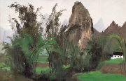 吴冠中(1919.7—)别名荼,江苏宜兴人。擅长油画、水墨画。1942年毕业于重庆国立艺术专科学校,留校任教。1947年留学法国,在巴黎国立高级美术学校苏弗尔皮教授工作室进修油画。后在鲁佛尔学校学习美术史。有作品参加1948年春季沙龙、1949年秋季沙龙。1950年回国历任中央美术学院讲师、清华大学、北京艺术学院副教授,中央工艺美术学院教授,学术委员会副主任,中国美术家协会书记处书记、常务理事。在艺术实践中,不懈地探索油画民族化的新路,注重绘画意境、形式感与民族气质。其作品融汇东西艺术之长,独创新格,在具象与抽象之间表现他的艺术见解。他主张艺术家应立足于祖国大地,到生活中去,到大自然中去观察、综合、提炼,表现画家对生活特有的感受。吴冠中曾在国内外举办个人画展十余次,作品有油画《长江三峡》、《水田》,水墨画《南岳松云》等。出版画集十余种,有《吴冠中画选》、《吴冠中油画写生》等。论著有《绘画的形式美》、《风筝不断线》等。?