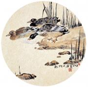 尹维新的国画《晨》 (1984),取材于江南水乡的牧鸭生活。